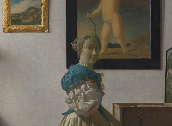 Explore the themes of love and harmony in Vermeer's Young Woman Standing at a Virginal.