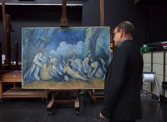 Seeing ‘Bathers’ without its frame, raises both insights and questions about this large scale work from the end of Cezanne’s career.